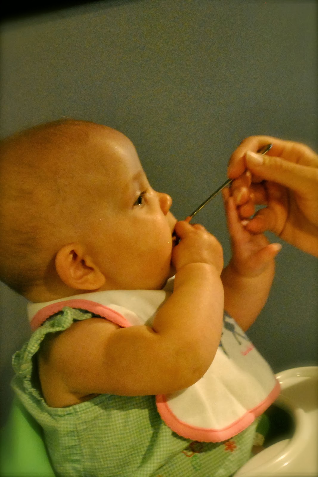I laugh about the "Real Life" of this picture, too--this is not the official First Baby Food. More like the Third Baby Food. The first two being straight up Ice Cream Bon Bon's.